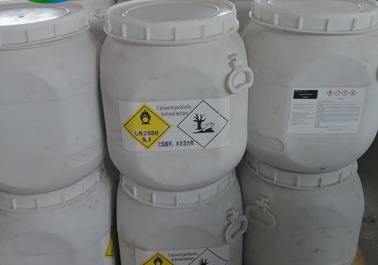 Solución química de uso industrial con alta concentración, utilizada en procesos de desinfección y aplicaciones técnicas especializadas.